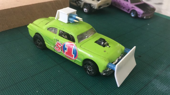So, I hit the charity shops close to me. Two out of three failed me, by the the third had a fairly wide collection. Not used to buying toy cars, I skulked guiltily in the corner. The green and pinkish cars, I’m relatively pleased with. The third, I initially liked the shape, however I think I should have gone a bit safer at this stage.
