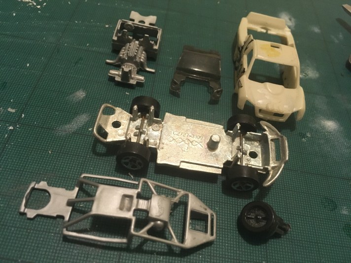 Tearing it apart, I noticed I had gold! Lots of bits that if I had a sharp craft knife – I went through three – I could salvage: a roll frame, an engine and some mother stuff.