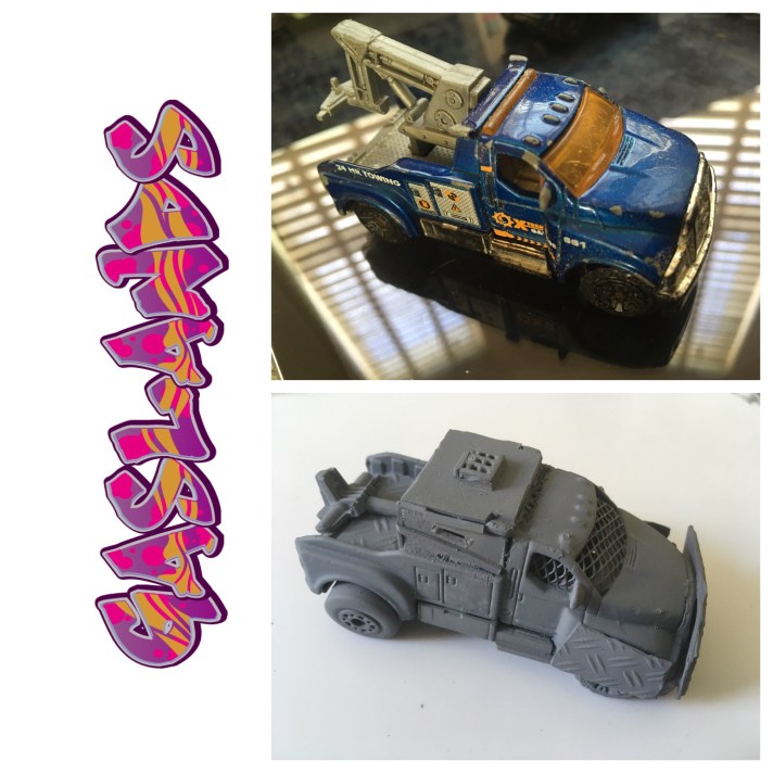 I did some experimentation with texturing the plasticard… I’m not keen on buying parts as yet. To that end, I have tried to scratch build a oil slick maker on the van.